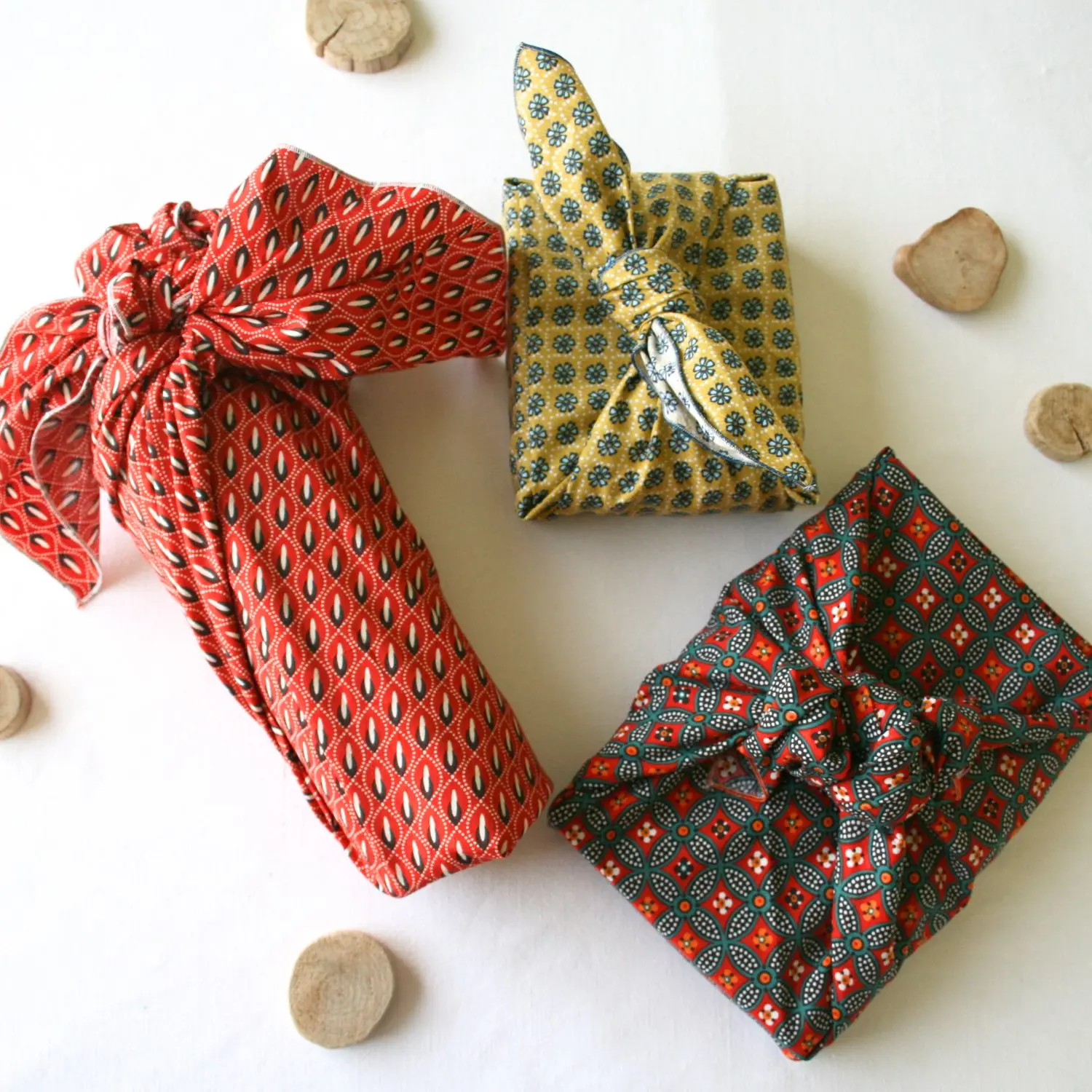 Mes Furoshiki Intemporels en coton Oeko-Tex incarnent l’élégance et la durabilité. Fabriqués avec soin dans mon atelier en Bretagne, près de Rennes, ces Furoshiki sont conçus pour t’offrir une solution écologique et esthétique pour emballer tes cadeaux de manière réutilisable.